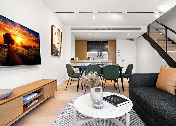 La Villa Stylish 3-Bed Townhouse In Vibrant Fitzroy Melburne, situada a 2 km de animados centros comerciales como la Federation Square, ofrece a sus huéspedes un aparcamiento.
